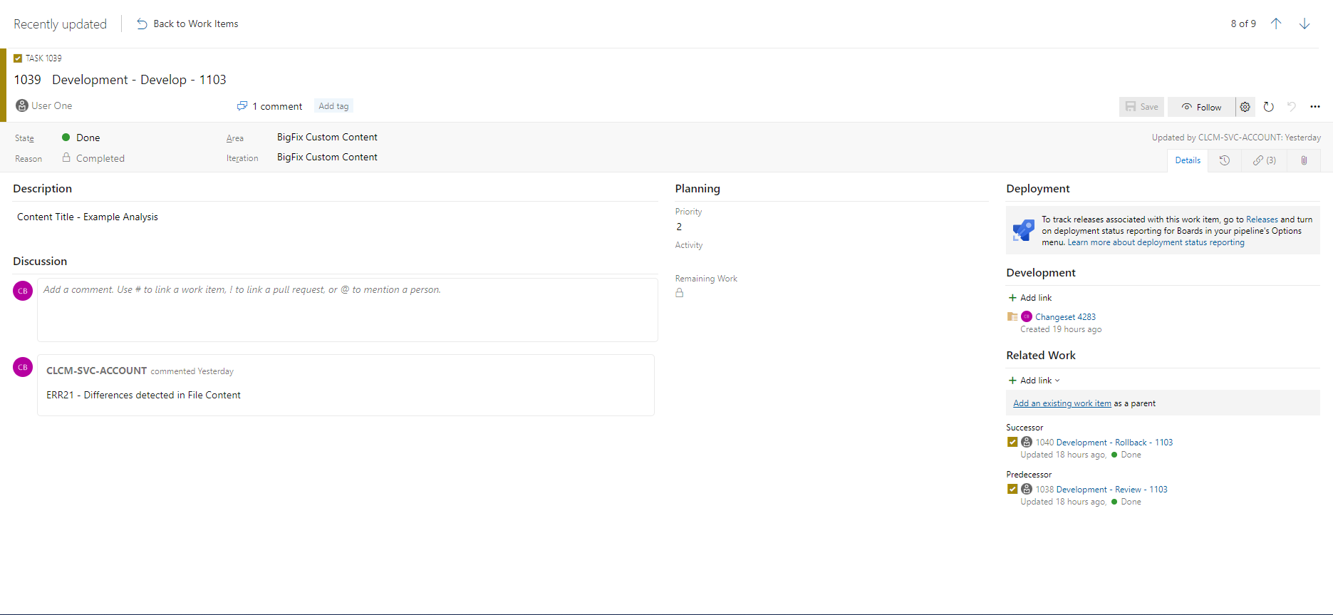 Successor/Predecessor links allow for the tracing of all Work Items associated with a given Work Item. These changeset links provide quick access to the changes made to version controlled content.